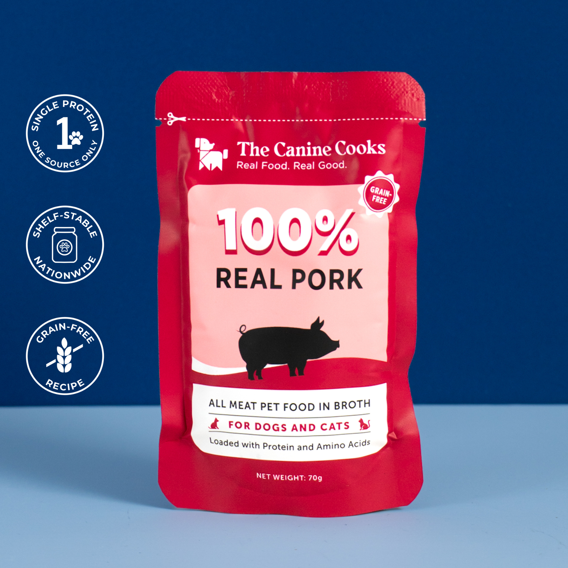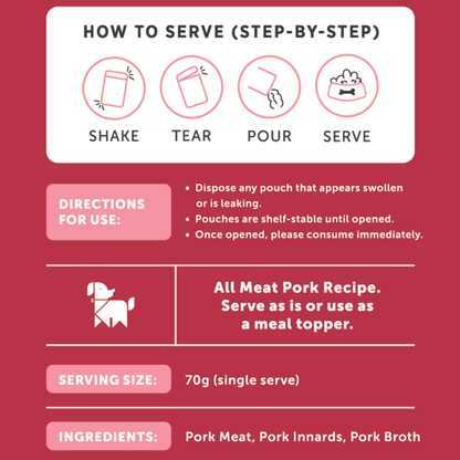 Power up your pup’s bowl with our Pure Protein Blend — a three-ingredient meal topper made with nothing but high-quality pork or beef. Gently cooked and portioned in convenient 70g pouches, this protein boost is perfect for picky eaters, high-energy dogs, or pets on customized feeding plans.